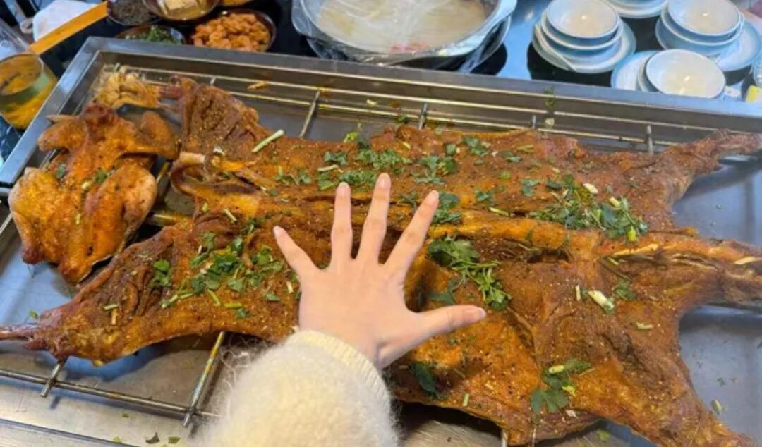 36斤活羊烤制后剩6.9斤。图/视频截图